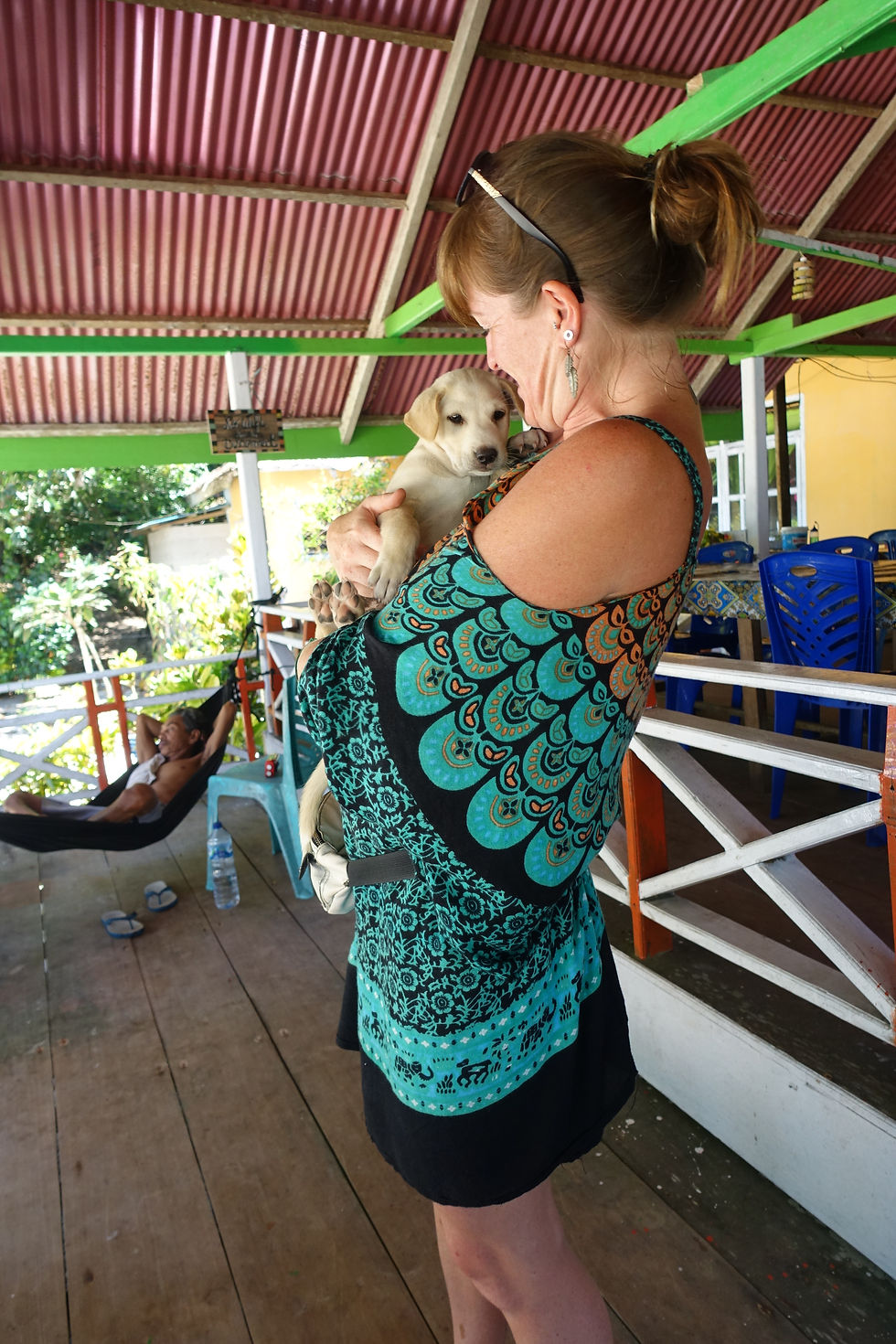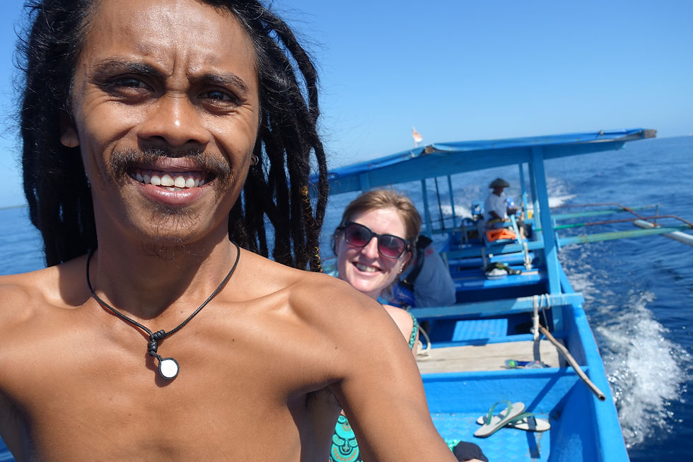 Nicht nur für mich, sondern insbesondere für Joe ein einmaliges Erlebnis, der bisweilen noch nie einem Delphin, geschweige denn so vielen in freier Wildbahn beim Spielen zusehen konnte. Nachdem 30 Minuten später weitere Boote mit durchschnittlich 50-100 kreischenden Menschen und lauten Motoren auftauchten, suchten wir das Weite und fuhren Richtung Pulau Siladen. Eine relativ kleine Insel in dessen Front sich ein steil hinab verlaufendes Riff mit unzählig vielen bunten Korallen und einer Artenvielfalt an Meeresbewohnern befindet, die mich vom Schnorcheln gar nicht mehr an die Oberfläche kommen lassen wollten. Für Taucher als auch Schnorchler ein absolutes Paradies und mehr als empfehlenswert. Schade, dass ich keine Unterwasserkamera dabei hatte, aber manchmal genügt es auch einfach den Moment zu genießen, ohne dabei durch ein Objektiv zu schauen. Ein weiterer Schnorchelstopp war unweit unserer Insel, jedoch ganz im Süden gelegen,