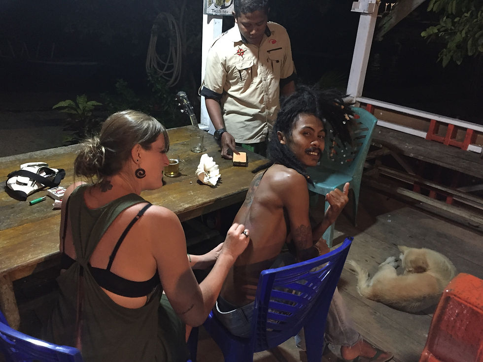 und daher gibt es auch wenige Möglichkeiten sich ein Motorrad auszuleihen. Wir haben aber fußläufig von unserer Unterkunft direkt eine nette Bar gefunden, wo wir nicht nur einen Roller mieten, sondern auch Arak kaufen und mit den Beach Boys Jammen konnten.