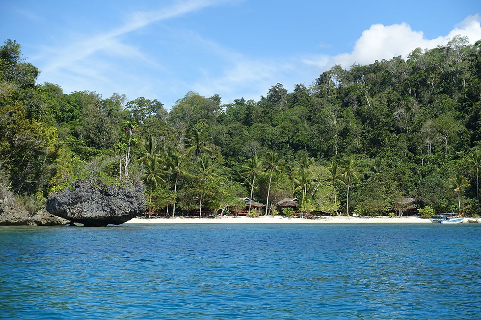 und abgesehen von der Helligkeit auch ein wenig Schlaf finden. Ich habe mir sagen lassen, dass die Fähre sonst nicht so voll und eine Vorbuchung nicht nötig ist. Glücklicherweise haben wir aber unsere Plätze vorher gebucht, denn sonst hätten wir die Nacht auf dem kalten, unbequemen Boden verbringen müssen. Morgens gegen ca. 05:00 Uhr erreichten wir Wakai und da wir den Sohn der Eigentümer- Pudihn- für unsere Unterkunft auf den Togians zufällig in Gorontalo bereits kennengelernt haben, konnten wir mit ihm zusammen den letzten Weg per Boot nach Kalibiri antreten. Entlang an weißen Stränden und auf kristallklarem Wasser schippernd,