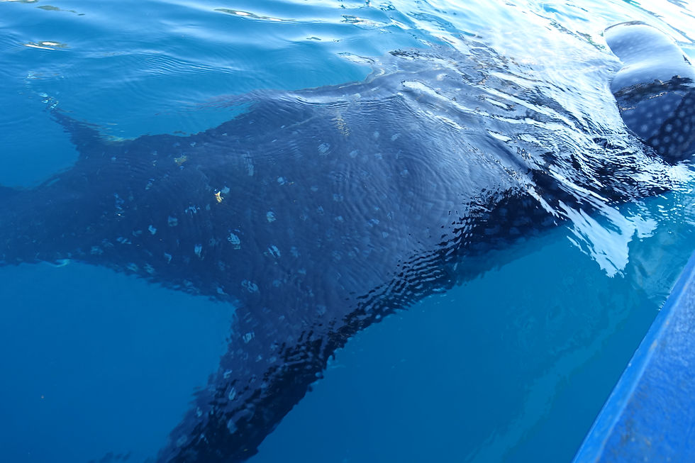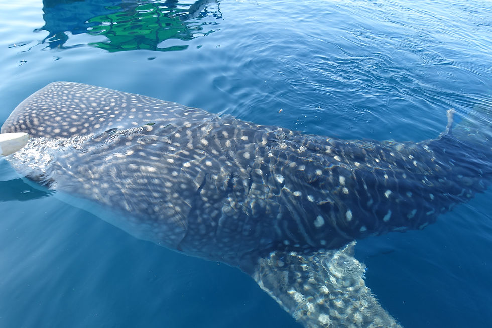 Nach einem Tag Ruhe für meinen Fuß wollte ich zumindest am letzten Tag in Gorontalo etwas Schönes erleben, so dass wir mit dem Boot zu den Whale Sharks gefahren sind. Die Bootsfahrt hätte man sich an dieser Stelle eigentlich auch sparen können, da wir nach 5 Ruderschlägen bereits inmitten von den Walhaien waren, aber sowas weiß man ja vorher nicht :-)