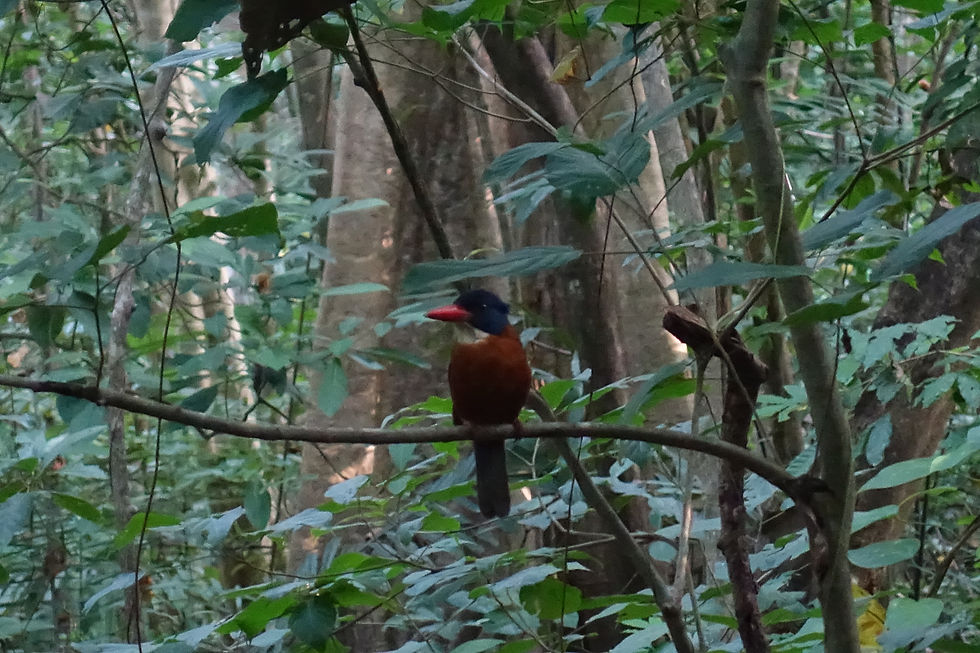 Im Inneren des Nationalparks sind wir den Stimmen der Waldbewohner gefolgt und haben so, auch Dank unseres Guides, die unterschiedlichsten und beeindruckendsten Vögel bzw. Lebewesen zu Gesicht bekommen. Zuerst erblickten wir den Green-backed Kingfisher,