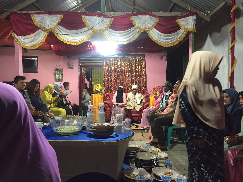 So kamen wir auch nicht umhin, der Einladung zu einer Hochzeitszeremonie gleich hier um die Ecke zu folgen. Bis dahin wusste ich zwar, dass in Gorontalo, anders als im restlichen Sulawesi sehr streng gläubige Muslime leben, wie streng jedoch, erfuhr ich erst im Anschluss an die Zeremonie, als Joe mir zu all meinen Fragen die entsprechenden Antworten lieferte.