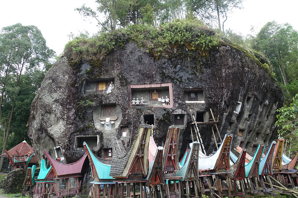 Bei genauerer Betrachtung ähneln diese Häuser aber nicht nur einem Schiff, sondern seitlich auch der Form eines Büffelhorns, welches in Vielzahl tatsächlich auch zur Verzierung aus vergangenen Begräbnissen genutzt wird. Die Anzahl der Hörner spiegelt dabei insbesondere den Reichtum der Familie wider.