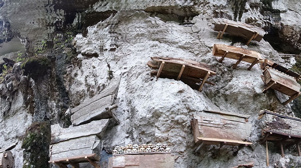 Weiter Richtung Süden folgten wir den Schildern zu den Lemo-Felsengräbern, wo auf mehreren Galerien knapp 50 Tao Tao zu sehen sind,