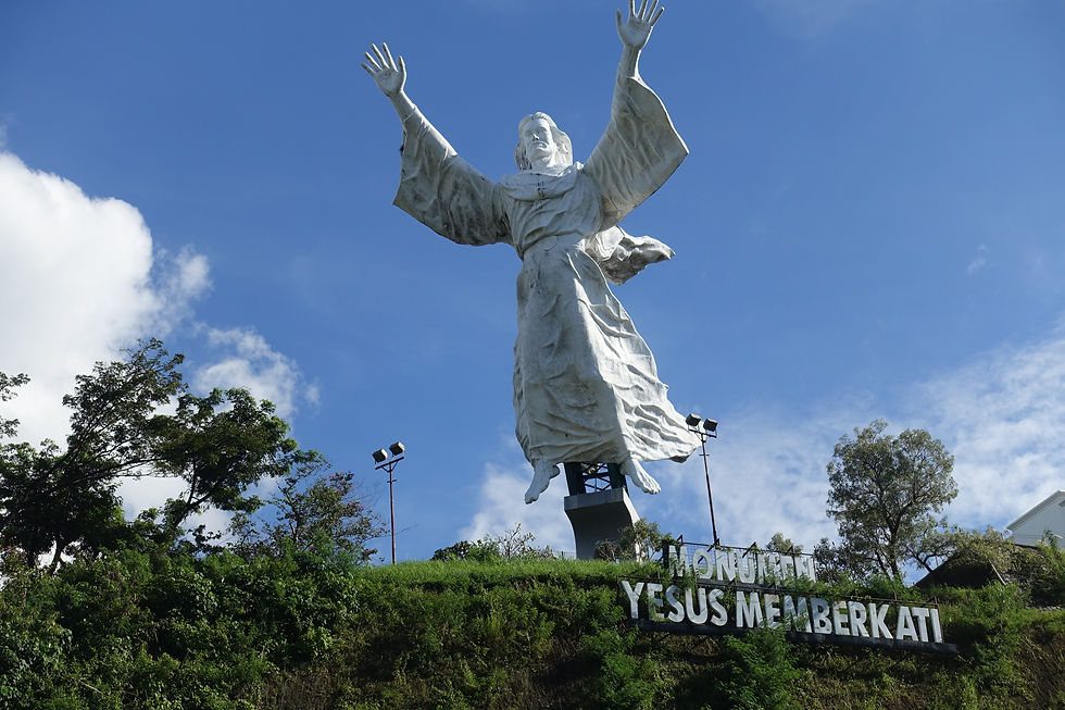 Unser letztes Ziel des Tages, Sangalla, konnten wir leider aufgrund einer Veranstaltung der Regierung nicht besuchen, da die kompletten Zufahrtstraßen gesperrt wurden. So haben wir auf dem Rückweg nach Rantepao noch die riesige Jesusstatur besichtigt, die man schon von weitem über die Hügel erspähen konnte.