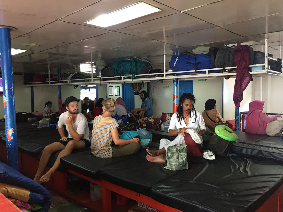 12 Stunden mit der Fähre von Gorontalo ging es weiter zu den Togian Inseln. Da wir vorab die sog. Tatami Klasse für 72.000 RP gebucht hatten, konnten wir die Überfahrt auch ganz gechillt auf Matratzen verbringen